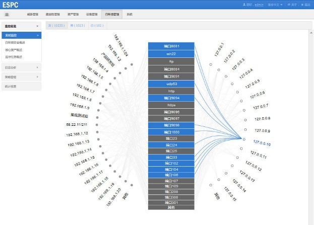 優(yōu)化圖形時,我們對很多細(xì)節(jié)進(jìn)行了調(diào)整: – 考慮太密或太疏時用戶的感受,只展示了TOP N。 – 弧度、配色的優(yōu)化,與我們UI界面風(fēng)格相一致。 – IP名稱超長時省略處理。 – 微觀視角中,源和目的分別以藍(lán)色和紫色區(qū)分,同時在線上增加箭頭,箭頭向內(nèi)為源,向外是目的,方便用戶理解。 – 交互上,通過單擊鉆取到單個端口和IP的信息;鼠標(biāo)滑過時相關(guān)信息高亮展示,這樣既能讓畫面更加炫酷,又能讓人方便地識別。