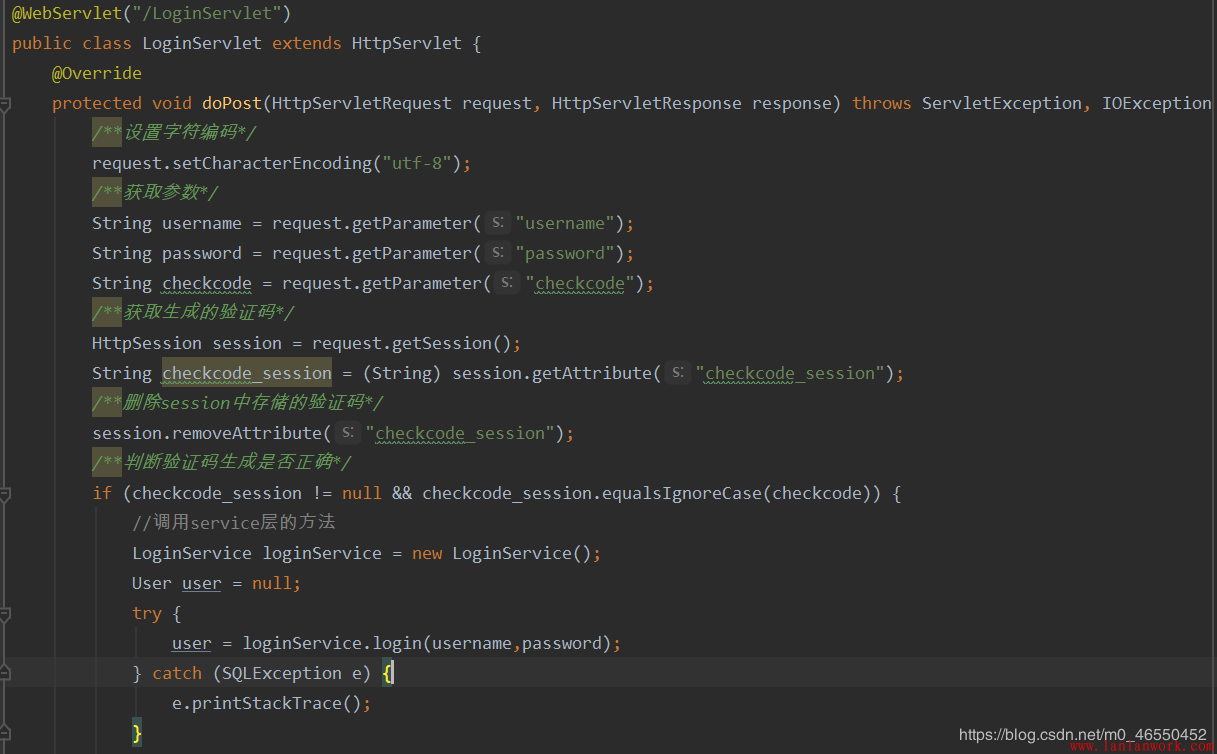 如下圖所示,為了保證servlet層能夠正確接收到界面所展示的驗(yàn)證碼信息,同時(shí)因?yàn)閟ession對象是項(xiàng)目自生成的,所以我直接獲取session對象并以類似于鍵值對的形式將頁面驗(yàn)證碼信息存入session中。