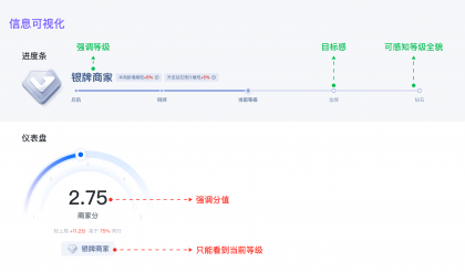 我們要強(qiáng)化商家的等級(jí)感知,通過(guò)視覺(jué)和交互引導(dǎo)等方式,強(qiáng)化商家對(duì)等級(jí)感知的重要性和影響。
