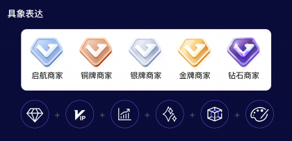 設(shè)計(jì)的基本出發(fā)點(diǎn)是幫助業(yè)務(wù)建設(shè)平臺(tái)等級(jí)模型的表達(dá)體系,將業(yè)務(wù)目標(biāo)轉(zhuǎn)化為用戶行為,設(shè)計(jì)清晰而直觀的商家分層表達(dá)體系,將不同商家等級(jí)與其對(duì)應(yīng)的特權(quán)、服務(wù)等信息進(jìn)行明確的關(guān)聯(lián)和傳達(dá),以便商家能夠快速理解和辨識(shí)商家等級(jí)的差異和優(yōu)勢(shì)。