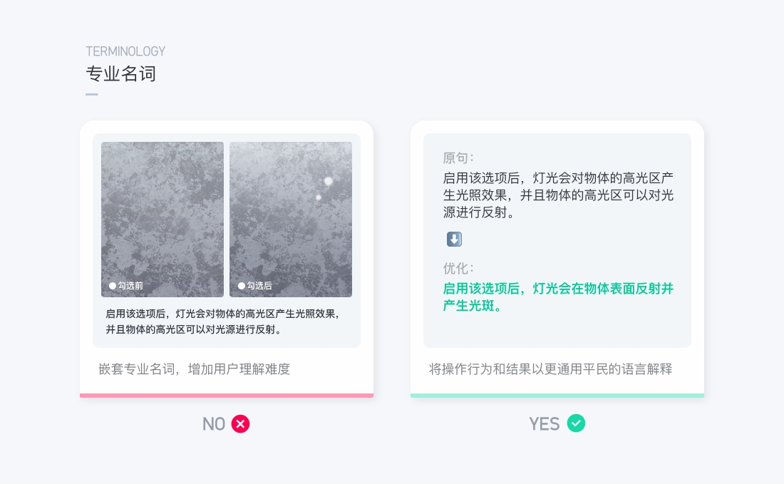 專業(yè)名詞:結(jié)合善解人意和直率原則,避免讓用戶產(chǎn)生多重疑惑,專業(yè)名稱平民化、通用化