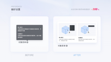 案例3:對象菜單鼠標(biāo)偏好設(shè)置在設(shè)計(jì)工具中,選擇對象喚出菜單,在酷家樂工具中可以設(shè)置為鼠標(biāo)左鍵點(diǎn)擊即喚出菜單(僅展示圖標(biāo)),也可以鼠標(biāo)右鍵喚出菜單(圖標(biāo)文字結(jié)合)。