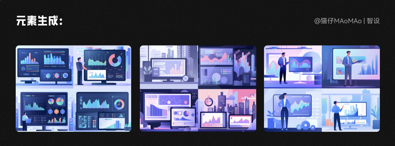 數(shù)據(jù)分析與可視化的背景,直接生成數(shù)據(jù)圖表的效果并不是很理想,把辦公室場景全部描繪出來生成的素材更加符合需求,但是還需要再手動(dòng)對素材進(jìn)行細(xì)化。