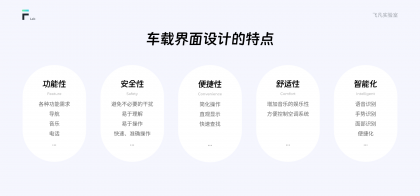 功能性:車載界面設計需要滿足車輛的各種功能需求,包括導航、音樂、電話、空調(diào)等等。因此,車載界面設計需要具備強大的功能性,以便為駕駛員提供更加便捷、高效的操作體驗。安全性:車載界面設計需要考慮到車輛的安全性。例如,界面的設計應該避免不必要的干擾,以免分散駕駛員的注意力。同時,界面的顯示效果和操作方式應該易于理解和操作,以確保駕駛員在行駛過程中能夠快速、準確地進行操作。便捷性:車載界面設計應該盡可能地簡化操作過程,使駕駛員能夠快速地到達目的地。例如,在導航界面中,界面應該能夠直觀地顯示路線、預測到達時間以及多種導航方式供駕駛員選擇。舒適性:車載界面設計需要考慮駕駛員的舒適性。例如,在聽音樂時,界面的設計應該能夠顯示歌詞、顯示專輯封面等,以增加音樂的娛樂性。同時,空調(diào)界面設計應該能夠?qū)崟r地顯示溫度、風速等參數(shù),使駕駛員能夠更加方便地控制空調(diào)系統(tǒng)。智能化:車載界面設計應該具備一定的智能化能力,例如語音識別、手勢識別、面部識別等等。這些技術(shù)可以使得車載界面更加智能化、便捷化,提高駕駛員的駕駛體驗。