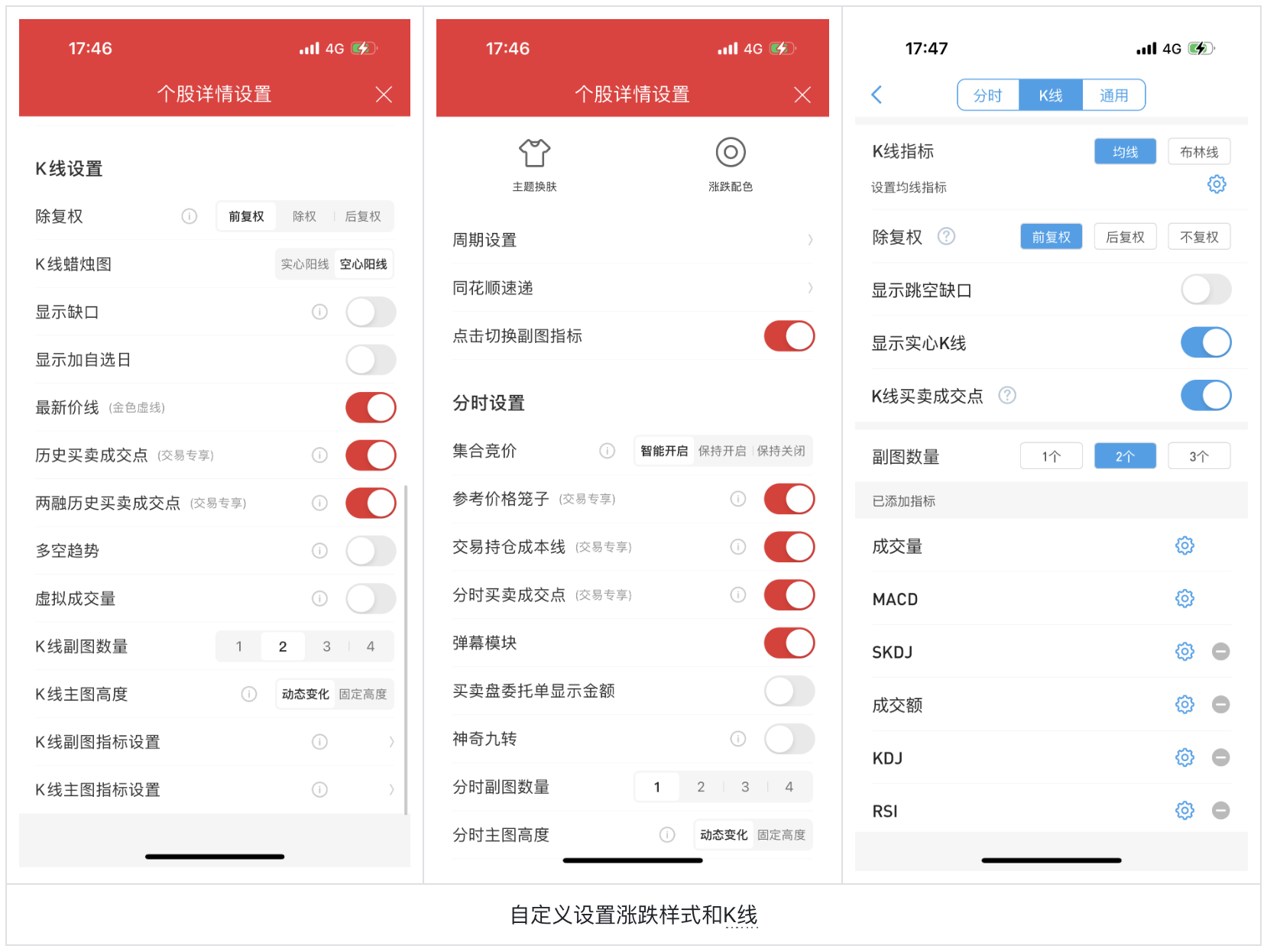 舉個例子,在個股詳情K線圖頁面,上漲用空心圖形表示,下跌用實心圖形表示,這種方法不僅幫助色盲用戶識別信息,還增加了視覺上的吸引力。