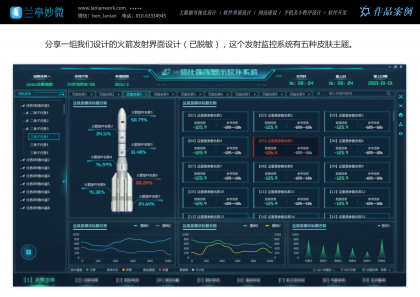 也分享一組我們給某單位設(shè)計(jì)的火箭發(fā)射界面設(shè)計(jì)(已脫敏),這個(gè)發(fā)射監(jiān)控系統(tǒng)有五種皮膚主題,分別應(yīng)用不同的場(chǎng)景,簡(jiǎn)約版、科技藍(lán)、軍隊(duì)?wèi)?yīng)用、慶典重大時(shí)刻...