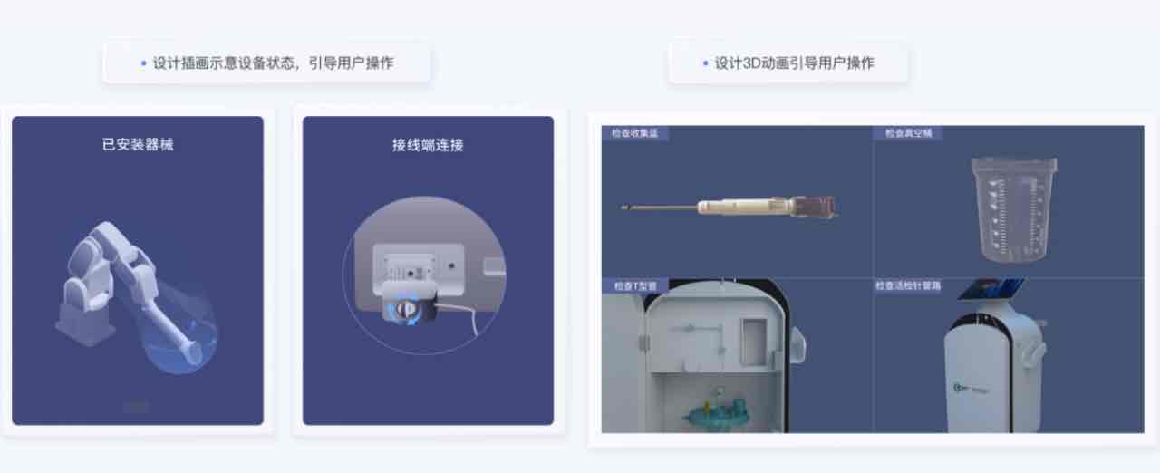 隨著科技的飛速發(fā)展,人工智能(AI)正悄悄改變醫(yī)療健康行業(yè),為其帶來前所未有的數(shù)字化轉(zhuǎn)型。未來,醫(yī)療健康行業(yè)將迎來個性化、精準(zhǔn)化、智能化的新時代。設(shè)備操作界面是醫(yī)師操控機(jī)器人的窗口,操作界面設(shè)計(jì)易用、直觀、美觀度直接影響到醫(yī)療機(jī)器人的使用效果和產(chǎn)品的品牌價值。人性化的操作界面可以提高操作者的工作效率和操作的舒適度,降低操作的學(xué)習(xí)成本和出錯率,提高手術(shù)精準(zhǔn)度和手術(shù)成功率。在UI設(shè)計(jì)中,我們結(jié)合真實(shí)的使用場景,加入插畫和建模動畫的設(shè)計(jì),引導(dǎo)醫(yī)護(hù)人員進(jìn)行操作,從而使操作更加直觀易用,提高工作效率。