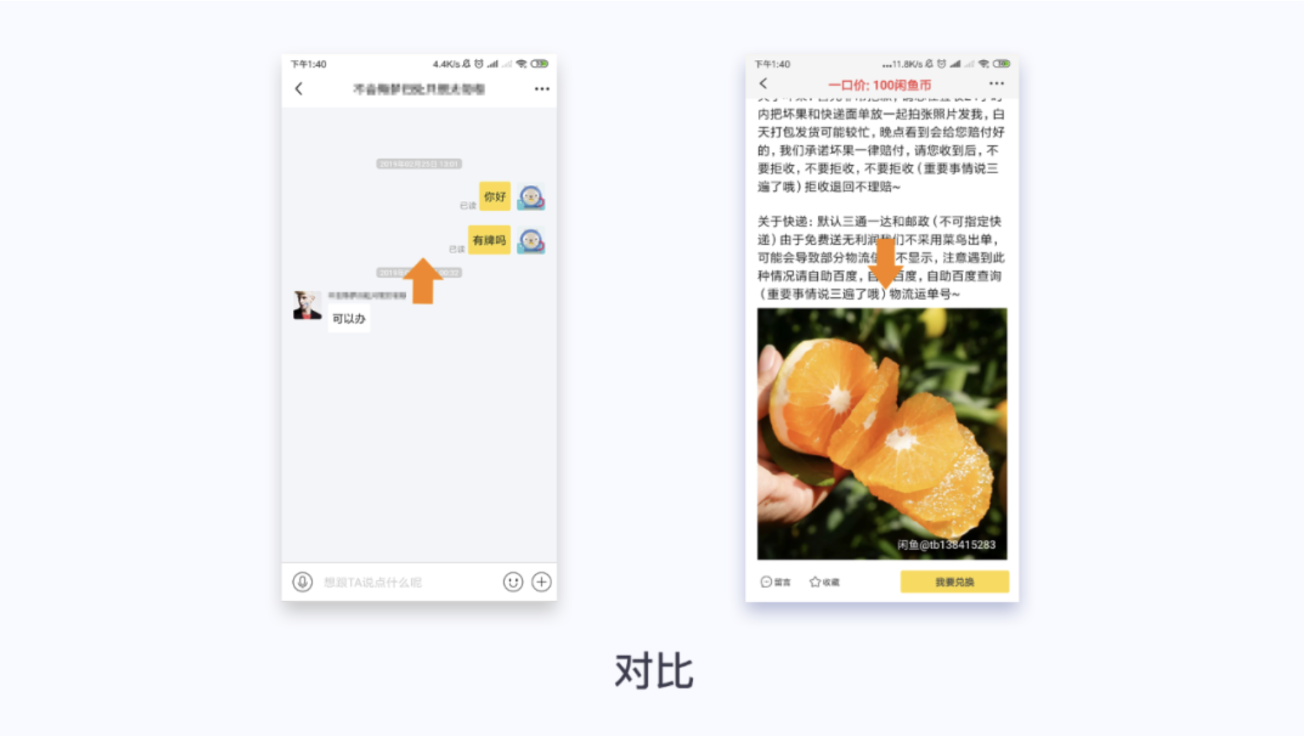 閑魚的兌換詳情頁面,文字和信息的對比,突出展示內(nèi)容信息,讓用戶一目了然區(qū)分內(nèi)容和圖片,多重信息對比,也增加了信息獲取的質(zhì)量,提升用戶體驗。