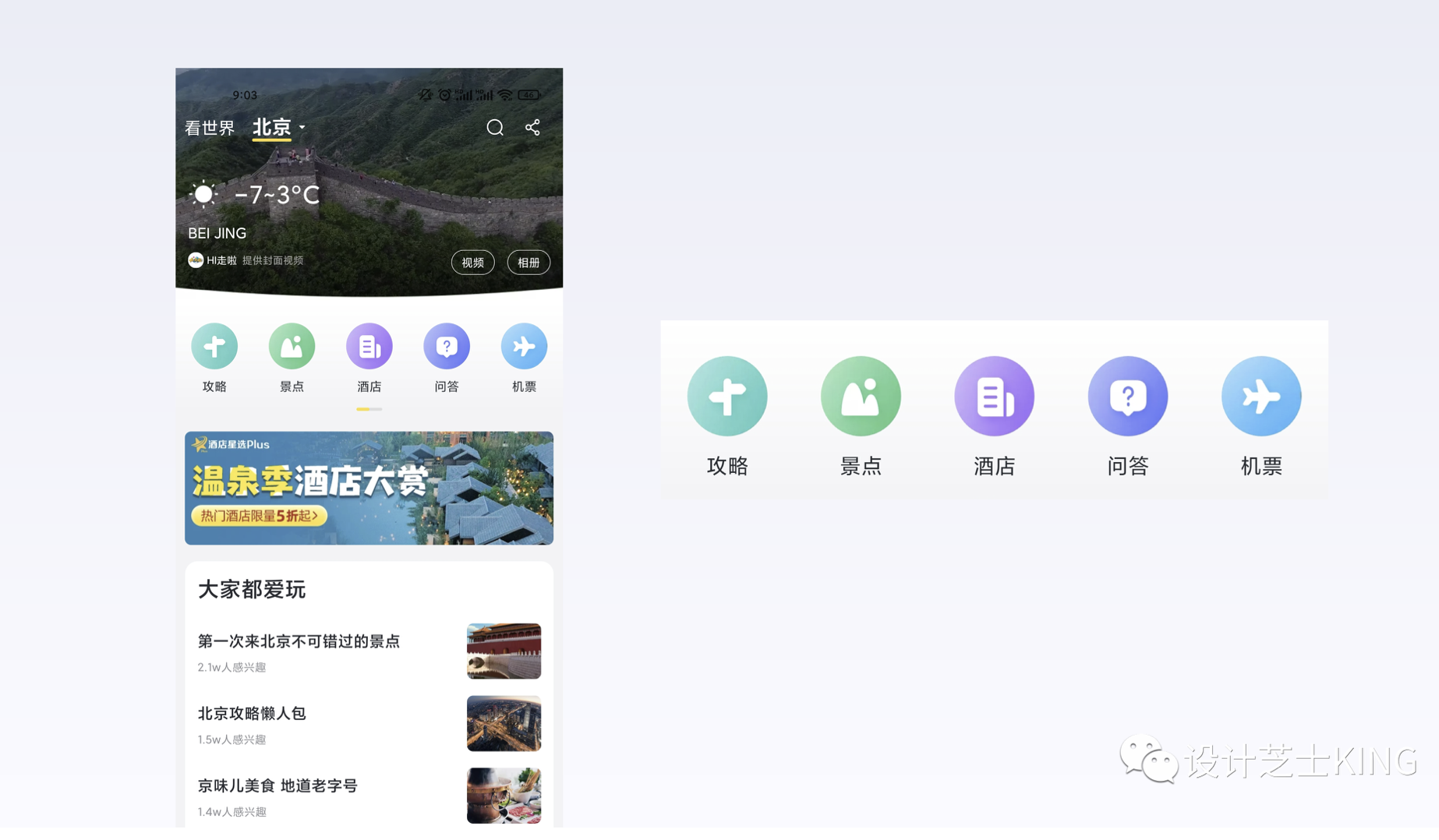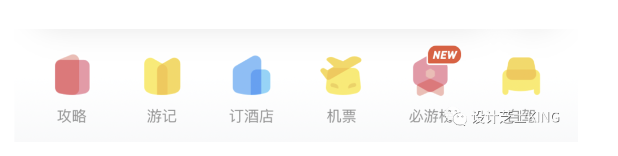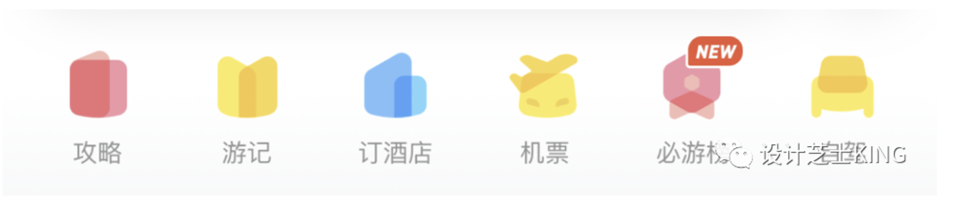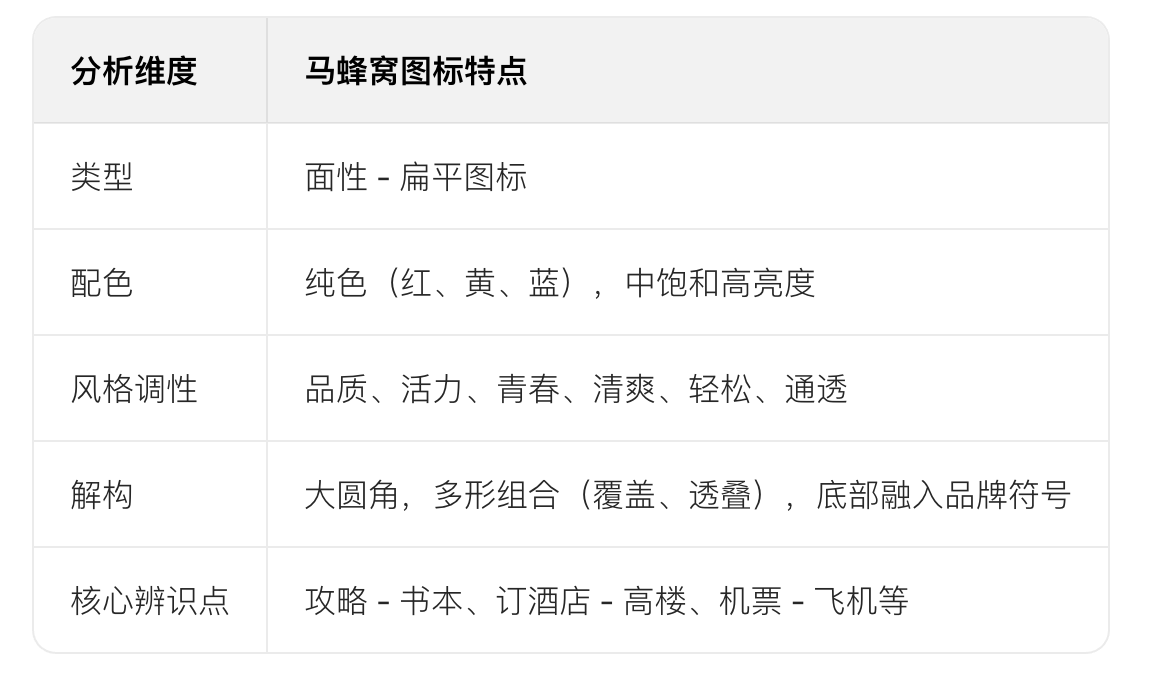 • 形狀直接表意(如酒店圖標(biāo)用高樓輪廓),避免抽象模糊(如馬蜂窩 “游記” 圖標(biāo)需優(yōu)化)。
