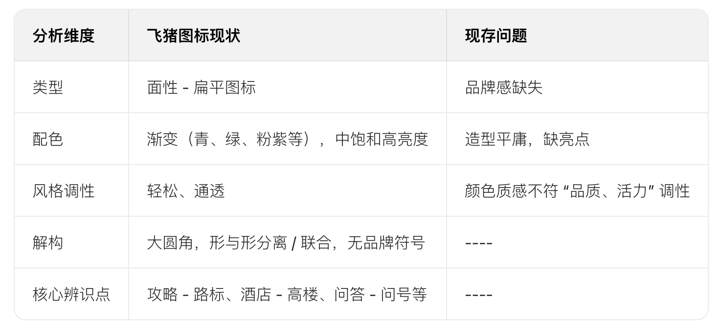 • 品牌符號(hào)融入:使用飛豬官方傾斜矩形符號(hào),簡化后嵌入圖標(biāo)結(jié)構(gòu)。