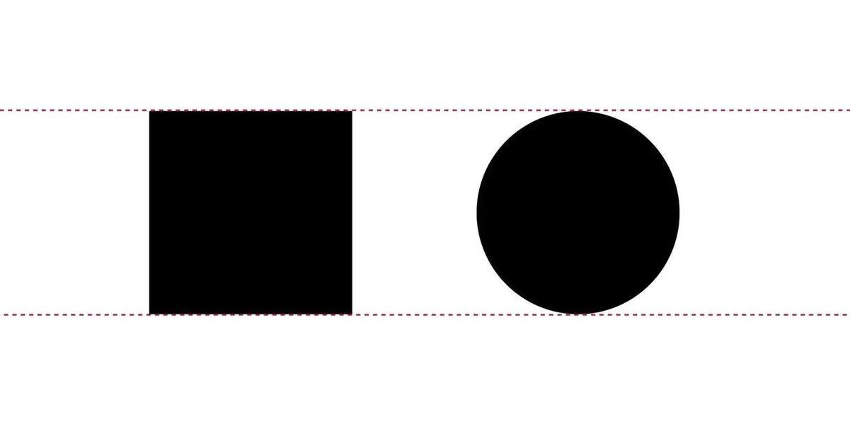 舉例說明:一個 24x24 的正方形圖標和一個 24x24 的圓形圖標放在一起,圓形常常顯得更小。