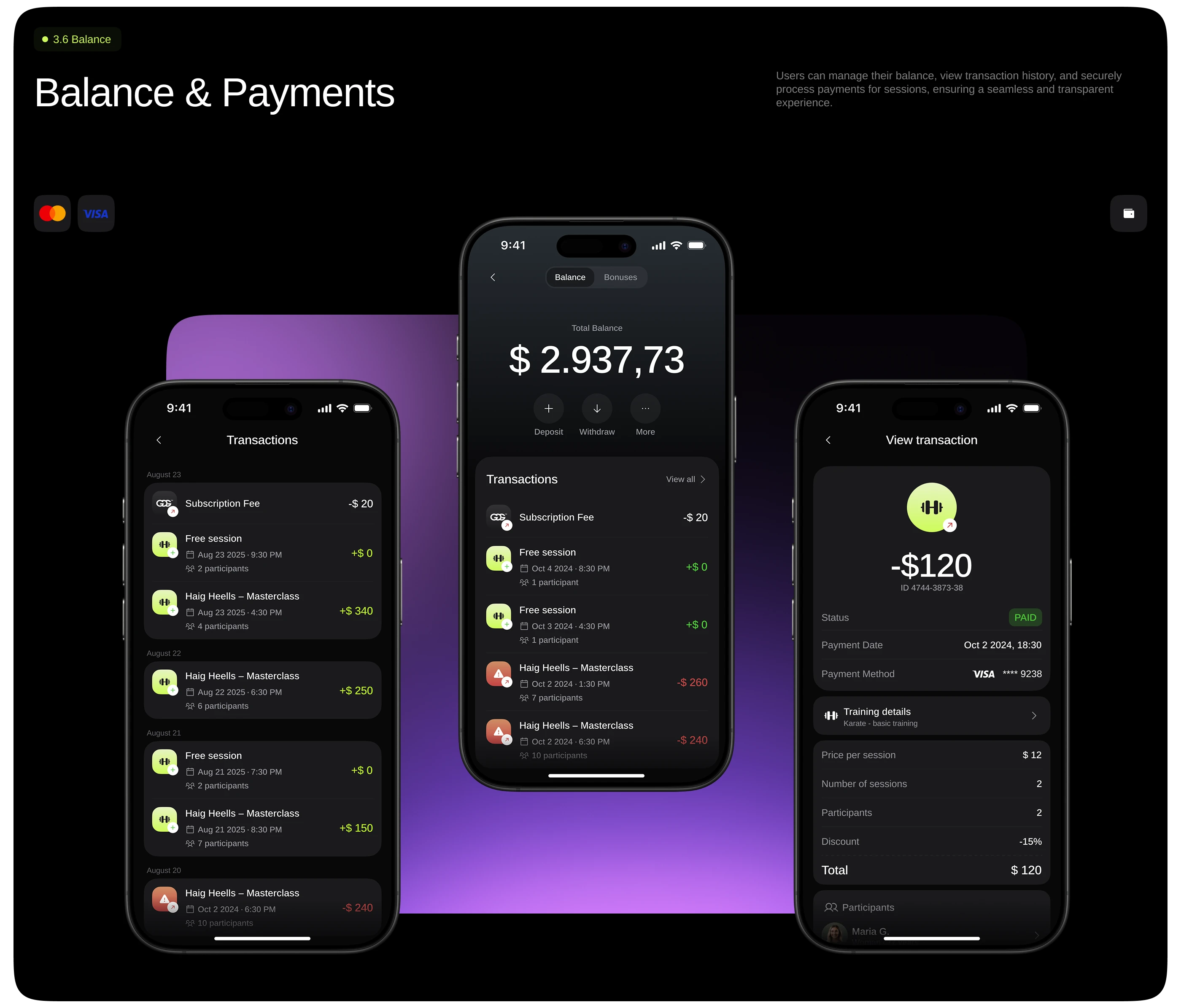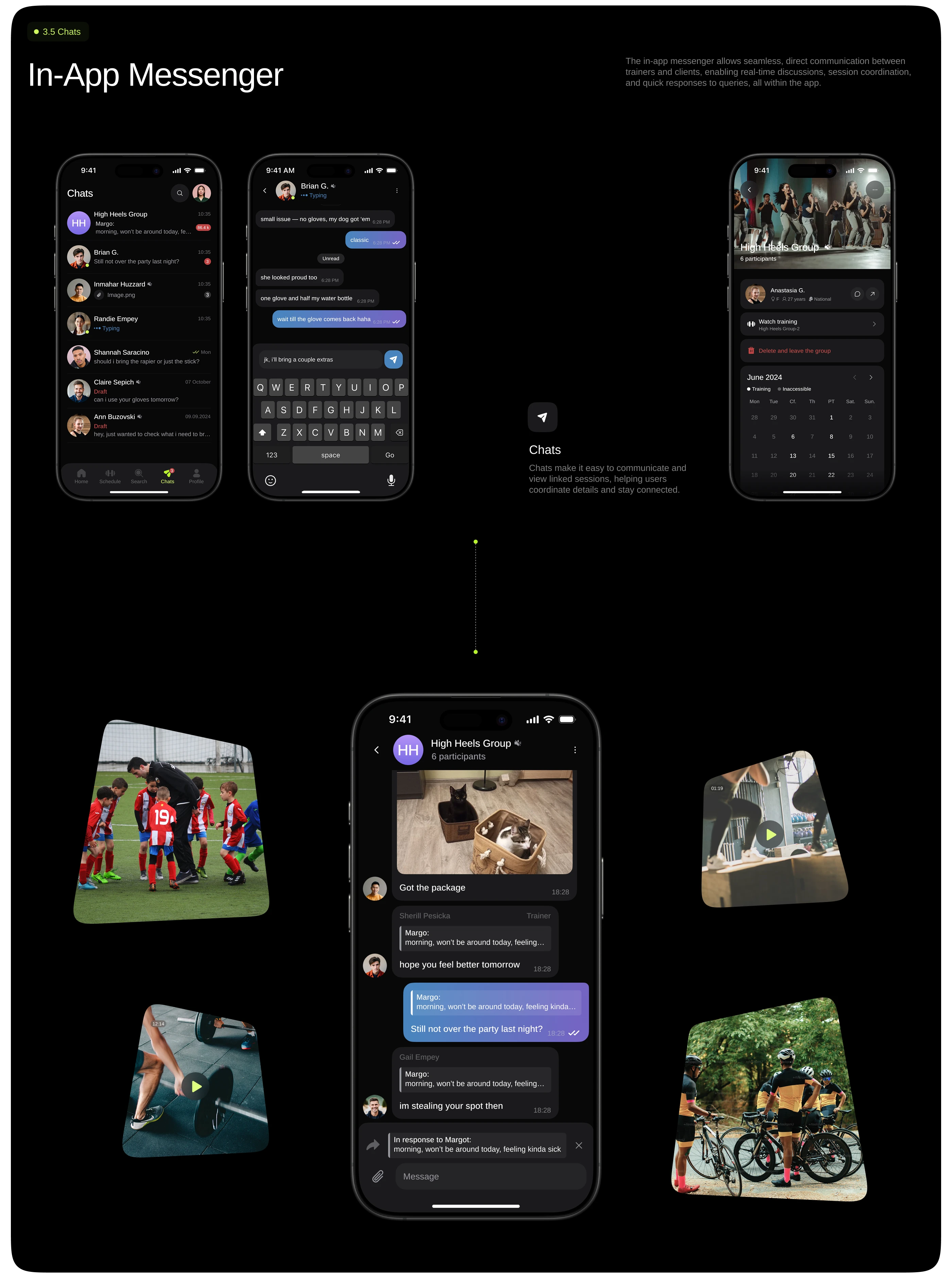 • 用戶路徑清晰:從搜索教練 → 篩選 → 查看日程 → 預約 → 支付 → 通訊,都在同一平臺完成,減少步驟流失。