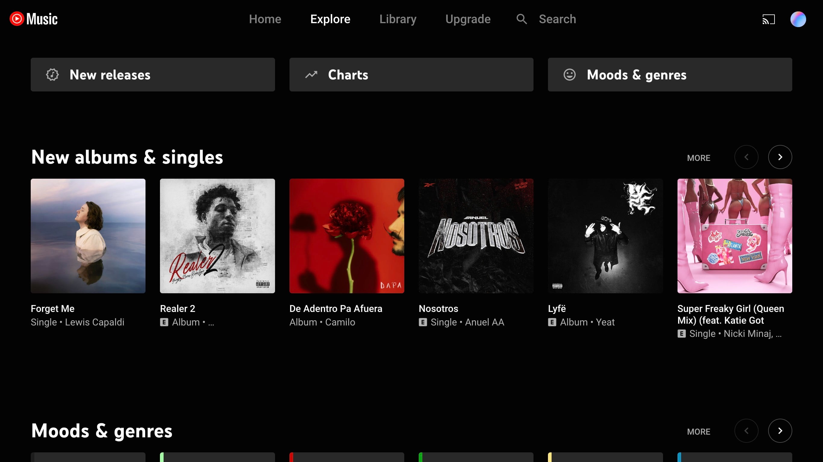 層次感:大標(biāo)題(如“New albums & singles”)→ 模塊標(biāo)題 → 內(nèi)容卡片 → 二級信息。