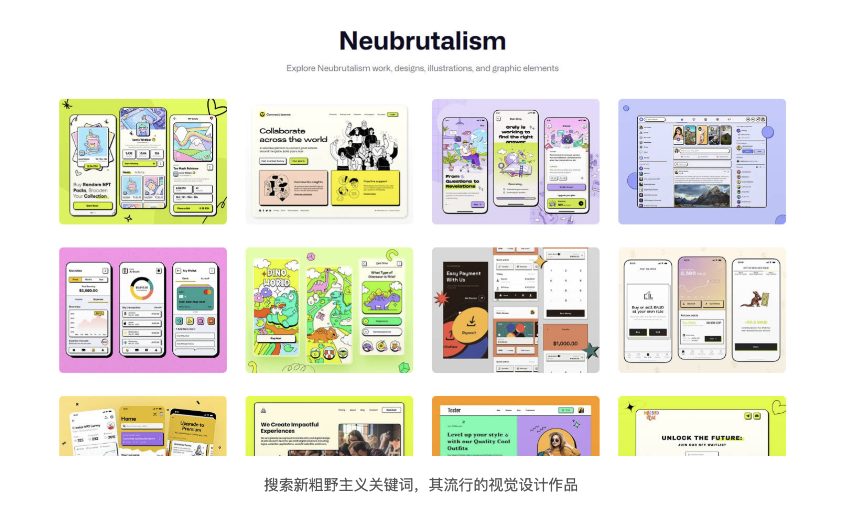 追溯其根源,新粗野主義的發(fā)展是一場跨越半個世紀(jì)的設(shè)計(jì)輪回。20 世紀(jì)中期,建筑粗野主義在戰(zhàn)后重建的背景下興起,以裸露的混凝土、簡潔的幾何結(jié)構(gòu)為特征,象征著現(xiàn)代主義對功能性和社會平等的追求。但因其 "冷酷壓抑" 的外觀,它在 80 年代后逐漸被后現(xiàn)代主義取代,陷入邊緣化。直到 21 世紀(jì) 10 年代,隨著懷舊潮流與對現(xiàn)代主義的重新審視,粗野主義在數(shù)字領(lǐng)域重獲新生。新粗野主義不再局限于建筑空間,而是在網(wǎng)頁設(shè)計(jì)、UI 界面中找到新的表達(dá)載體,從冷酷的建筑語言轉(zhuǎn)變?yōu)槌錆M個性的視覺符號。