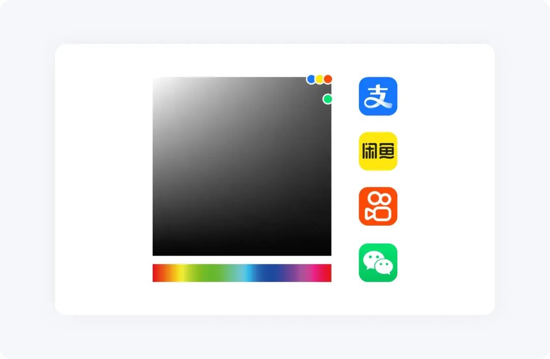 目前市面上那些成熟產(chǎn)品的配色,都會(huì)有這種規(guī)律,主色都基于拾色器右上角的位置。