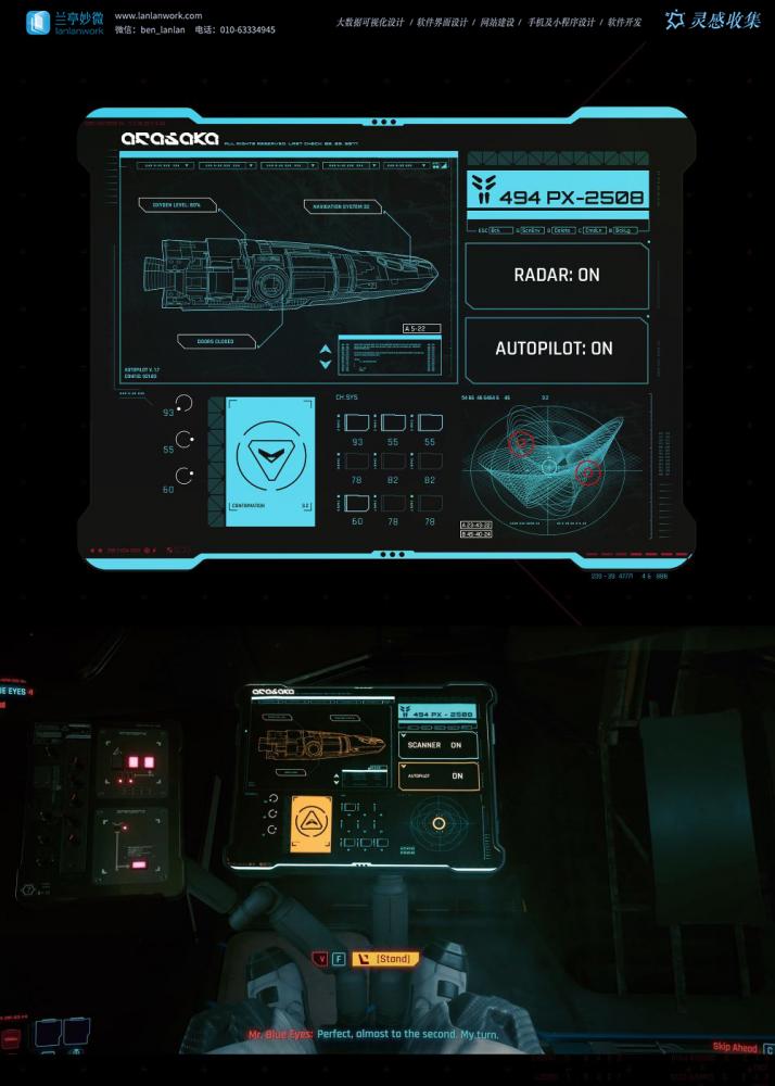 • 擬物化與抽象化的平衡:優(yōu)秀的科幻 UI 在抽象的數(shù)字邏輯和可理解的物理世界之間找到平衡。例如,《賽博朋克 2077》中的界面充滿了賽博朋克的粗糲感和故障美學(xué),而《星際迷航》的 LCARS 界面則以其流暢、有機(jī)的曲線,展現(xiàn)了一個(gè)高度發(fā)達(dá)、和諧的未來文明。