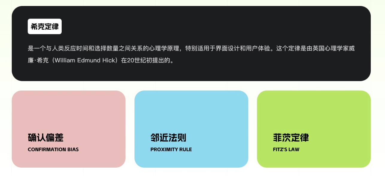 這一定律的誕生源于 1930 年代的一系列實驗,實驗中被試者面對不同數(shù)量的按鈕或選項時,做出選擇的反應時間隨選項增加而顯著變長。本質(zhì)上,當用戶面對多個選擇時,大腦需要對每個選項進行評估、對比,這個過程會消耗認知資源,而簡化選擇,就是為用戶的大腦 “減負”。