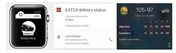 通知會(huì)以更「智能」的形式出現(xiàn),不會(huì)是現(xiàn)在的小廣告推送形式,也不會(huì)是類似 Widget 常駐的形式,而更接近「手表屏幕」大小,按需出現(xiàn),可交互的、功能相對(duì)完整的界面(即使是在手機(jī)上而不是手表上),用戶甚至可以永遠(yuǎn)不打開(kāi)一個(gè) App,而能夠享受 App 提供的全部功能。