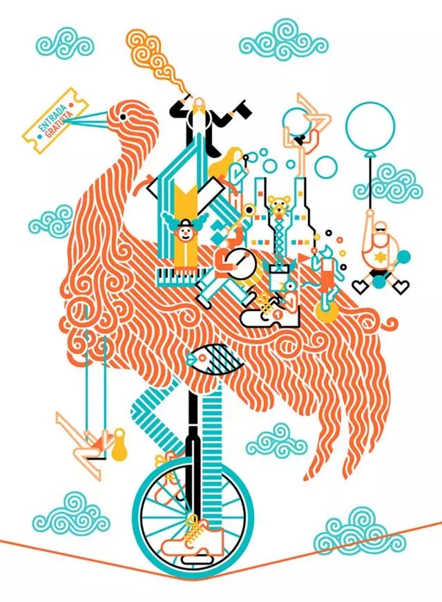 如下圖所示,橙色作為點(diǎn)睛色的同時(shí),也會(huì)有黃色和藍(lán)色也作為點(diǎn)睛色的運(yùn)用,而整個(gè)畫面在冷暖兩種點(diǎn)睛色之間確實(shí)非常平衡的關(guān)系。而橙色和藍(lán)色的對(duì)比色搭配帶來(lái)的活潑感正是畫面所需要的。