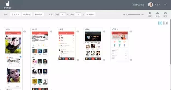 Demoo是基于web設計搭建的一款在瀏覽器內進行可視化操作的工具。通過上傳平面稿件,用手勢或觸點熱區(qū)的方式把界面關系連接起來,加入連接轉場,輸出一份仿真APP的、可體驗操作的設計方案,滿足在電腦、會議投影現場及手機上體驗操作。點擊這里可查看更詳細介紹:《為移動端方案設計演示而生的DEMOO》