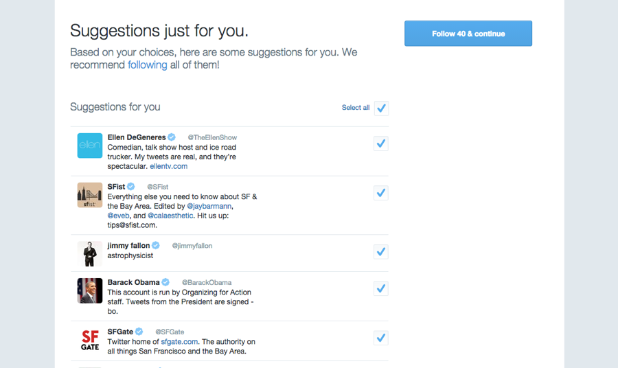 例如,Twitter為了強化習慣路徑,在新手引導流程中建議新用戶可以關注的人。一旦確定某個路徑能促進用戶路轉(zhuǎn)粉,你也會想做類似的事情。