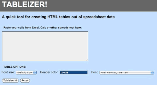 我偶然發(fā)現(xiàn)了一個小的web應用程序:Tableizer ,它可以把Excel里的表格粘貼進來轉(zhuǎn)換成HTML。利用這種方式你仍然需要自己寫一些樣式,但是會節(jié)省前期的表格構建時間。