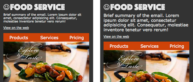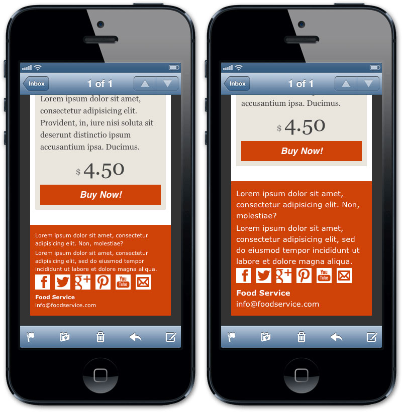 嚴(yán)禁復(fù)雜 —— 尤其是在郵件上。始終避免使用復(fù)雜的結(jié)構(gòu),否則在小屏幕上渲染時(shí)一定會(huì)失敗。請(qǐng)記住許多設(shè)備是不支持媒體查詢(xún)的(例如谷歌郵件),所以我們不能指望成熟的內(nèi)容重排技術(shù)。