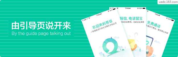 以易信為例,采用文字與水彩插圖結(jié)合的方式,文字分為2個(gè)層次,大標(biāo)題與小標(biāo)題,大標(biāo)題是對(duì)主功能的概括,小文字是對(duì)其功能模塊的詳細(xì)描述或進(jìn)一步補(bǔ)充說明。