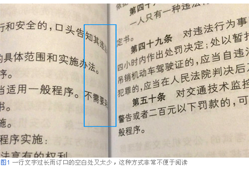 在設(shè)計(jì)工作中,如果有100個(gè)人就會(huì)有100種設(shè)計(jì)理論,我認(rèn)為并不能總結(jié)出一條絕對(duì)正確的理論。但是,如果完全沒有什么設(shè)計(jì)理論的話,貌似會(huì)使設(shè)計(jì)顯得很奇怪。比如,經(jīng)常會(huì)看到這種書籍(圖1),一行文字過(guò)長(zhǎng)而訂口的空白又處理得不太合適。只要看到這樣的設(shè)計(jì),馬上就會(huì)想到“這里好像沒有規(guī)則啊”,還會(huì)讓人產(chǎn)生“這本書的設(shè)計(jì)師好像不讀書啊”這樣的感覺。在閱讀過(guò)程中哪怕只有一些地方令人難以理解,也會(huì)讓人精神不集中,不能徹底關(guān)注文章本身。如果是一個(gè)讀書的人,他自己看看這樣的設(shè)計(jì),自己也會(huì)感到這種方式不便于閱讀啊。所以我認(rèn)為電子書的閱讀感受也是這樣,要做出理想的版面,作為設(shè)計(jì)者需要站在讀者的角度考慮,應(yīng)該尋找對(duì)于自己來(lái)說(shuō)便于閱讀的排版。因此,也借此機(jī)會(huì)來(lái)整理出網(wǎng)易云閱讀產(chǎn)品中,書籍正文文字排版的相關(guān)規(guī)則。