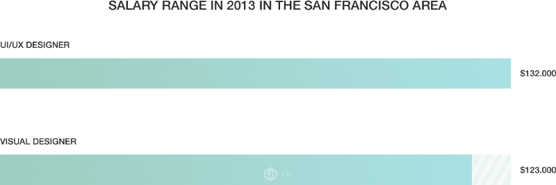 市場本身就是多學(xué)科性的。由Dashburst的圖表得出,擁有至少兩種技能的人,例如UI/UX設(shè)計或者UI/前端開發(fā),會得到比UI(視覺)設(shè)計師每年多10k的薪水。