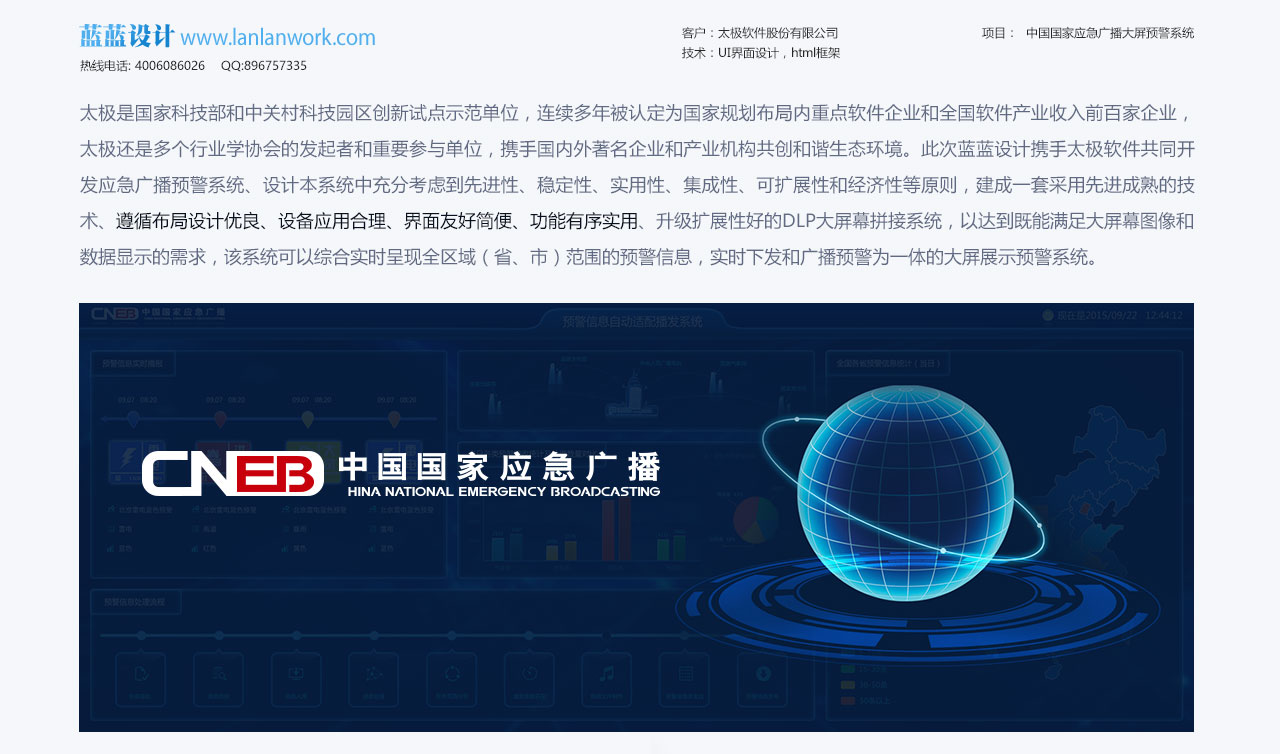 北京藍(lán)藍(lán)設(shè)計作品: 太極集團(tuán)承接的中央臺應(yīng)急指揮中心大屏