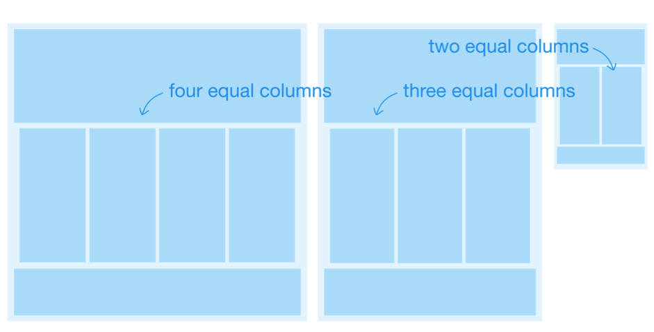 如上圖所示,從每列等寬的情況入手,可以讓規(guī)劃工作相對(duì)簡(jiǎn)單一些,幫助我們將注意力放在響應(yīng)式的布局改變上。