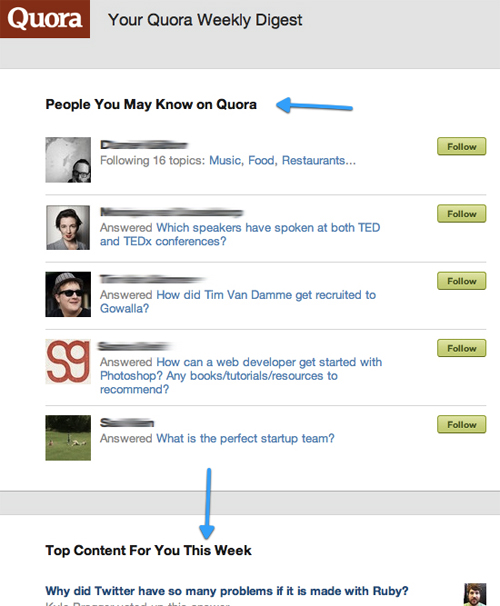 Quora會在郵件當中向用戶推薦他可能感興趣的內(nèi)容。如果你的網(wǎng)站或應(yīng)用有足夠的數(shù)據(jù)來支持這樣的個性化服務(wù),那么就考慮一下吧。