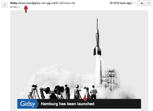 同樣是一幅與其站點風格相一致的復(fù)古照片。另外,注意到他們用來發(fā)送郵件的郵箱名稱沒?與常見的做法不同,Gidsy在這里使用了"please-reply",以此向用戶表達自己樂于傾聽意見的姿態(tài)。