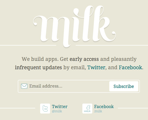 Milk家的細節(jié)處理方式會讓用戶更加樂于訂閱他們的新聞郵件。他們的做法與Hunch類似,都是在文案中明確的告訴用戶新聞郵件的重要性,而且不會很頻繁。