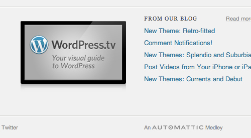 文案 :在wordpress.com首頁的頁腳當中有一段每次加載頁面都會發(fā)生變化的簽名語,有時是“來自Automattic的產(chǎn)品”,有時變?yōu)?ldquo;來自Automattic的樂章”。這種細節(jié)體現(xiàn)了他們對于自己產(chǎn)品的熱愛。