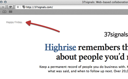 而37signals則通過左上角的當日問候語來簡單而有效的拉近了網(wǎng)站與用戶之間的情感距離。
