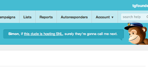 MailChimp 在情感化設(shè)計方面的一個特色之處就是他家的吉祥物,猩猩Freddie。這家伙會在你的個人資料頁打開之后為你歡呼,而且每次刷新頁面之后都會冒出一些隨機的笑話或鏈接。