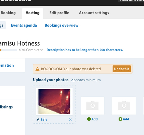 文案 :網(wǎng)站當中隨處可見簡短而幽默的文案,譬如“你好啊靚人!”、“嘭!你的照片被刪除了”等等。