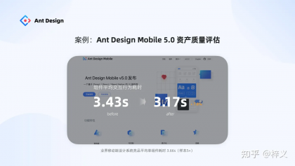 在螞蟻內部,我們還將原規(guī)范應用到其它設計系統(tǒng)的建設當中。比如,Ant Design Mobile 5.0 今年引來大版本的更新,從 200+ 的冗余組件收斂成了 68 個通用組件,同時通過評估發(fā)現(xiàn)其組件質量也提升了不少,系統(tǒng)中單組件平均交互行為耗時從 3.42 降到了 3.17,高于業(yè)界平均。