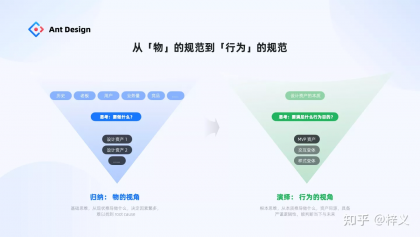 這時,我們要回歸本質,去源頭尋找組件建設的決策依據(jù),一個確定的能讓團隊共識的決策依據(jù)。這個依據(jù)正是 ADM 所倡導的,將建設視角從歸納視角切換成演繹視角,認識到真正的設計規(guī)范不是「物的規(guī)范」而是「行為的規(guī)范」。演繹視角是一種探究本質的思維,這與“第一性原理”一樣,我們需要去尋根究底何為組件的本質。