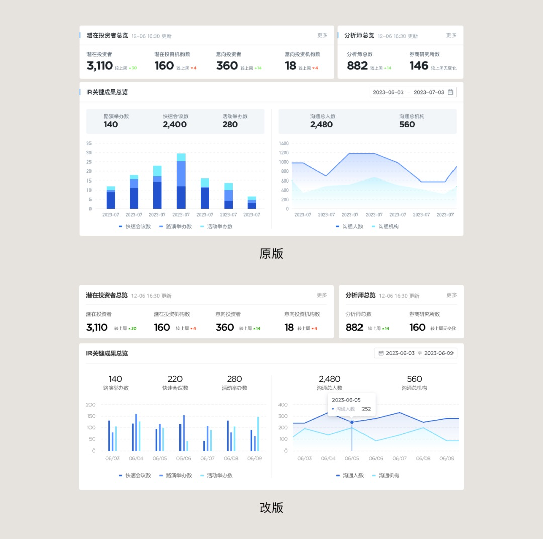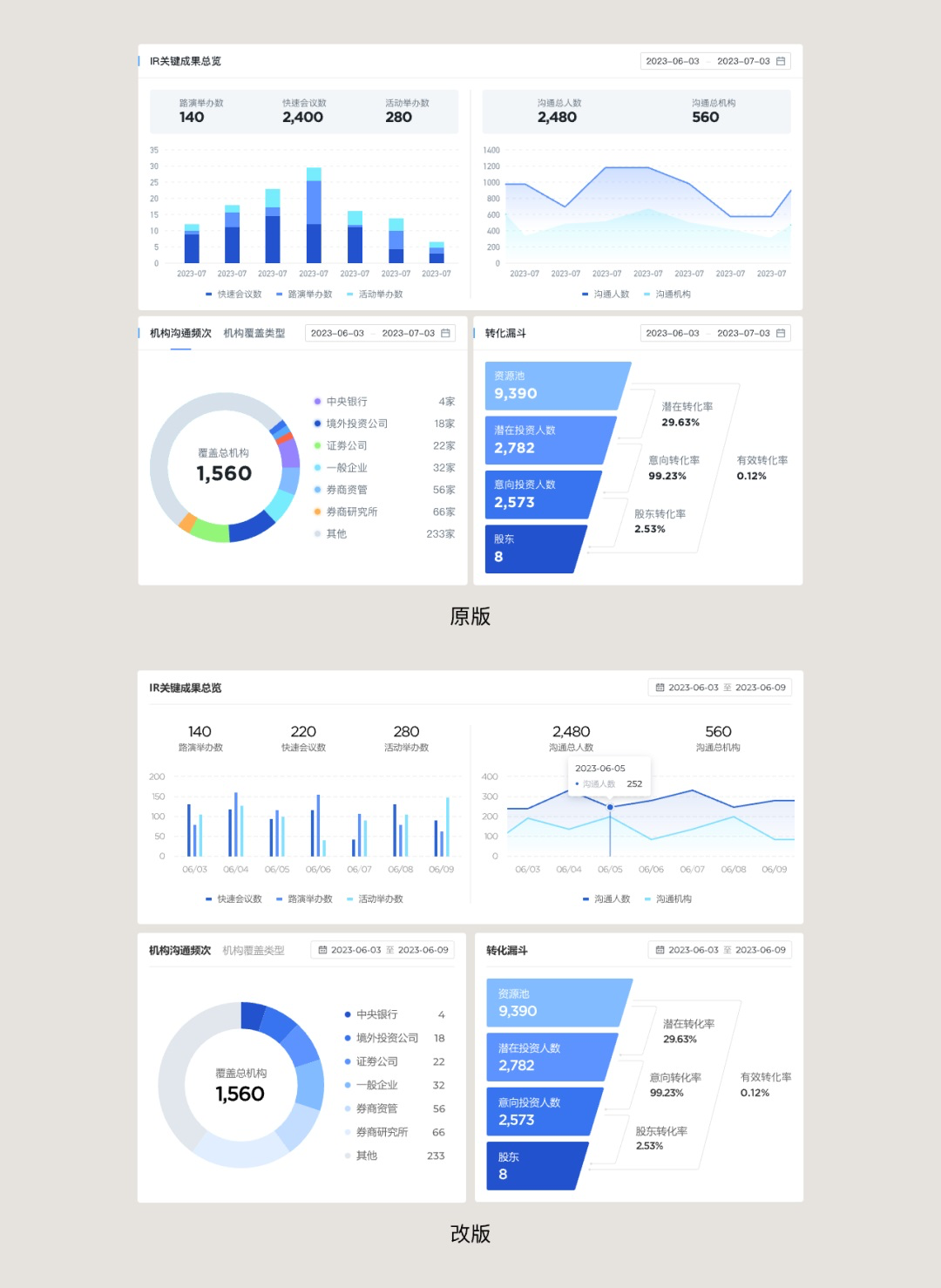 但重要不代表需要過度傾注和堆疊視覺元素,過度的設(shè)計會讓界面看起來有 “飛機” 敢,不僅不真實的印象產(chǎn)生了,還會顯得業(yè)余不夠自信。同時任何項目中表盤頁過度設(shè)計都會對整個項目造成負(fù)擔(dān),后續(xù)的頁面要怎么設(shè)計才能不和它產(chǎn)生隔閡,保持一致性。