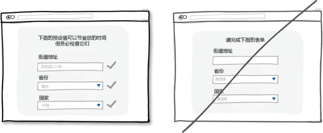 適當?shù)哪J值和預先填充好的表單字段可以大量減少用戶的工作量。在節(jié)省用戶寶貴的時間上面,這是種非常常見的做法,可以幫助用戶快速填完表單或者注冊信息。