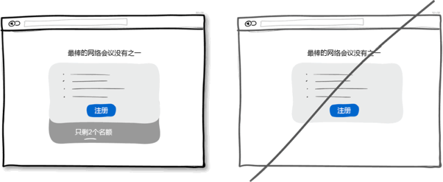 適當?shù)木o迫感是個有效的戰(zhàn)術可以讓用戶立即做出決定而不是等上個十天半個月。重要的是這種戰(zhàn)術屢試不爽,因為它暗示了資源的緊缺或者活動的時間有限,今天可以買,但明天可能就無法這么低價了。另一方面,這一戰(zhàn)術也讓用戶感到會錯失一次大好的機會,再一次,應用了人們害怕失去的本性。當然,這種戰(zhàn)術會被一些人嗤之以鼻,認為是不耿直的做法。不過,這只是種戰(zhàn)術而以,并且在保持合法性的前提下應用也無傷大雅。所以請不要為了營銷而在界面上制造緊迫的假象。