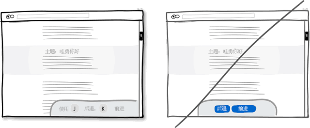 當你的程序廣為流傳,應該考慮下高級用戶的感受。人們總是試圖為一些重復性的操作找到更快捷的方法,快捷鍵就應運而生了。相比在界面上點來點去,快捷鍵無疑大大提高工作效率。一個好的例子就是現(xiàn)今流行于各個主流程序中的J(后退)K(前進)快捷鍵組合,比如在Gmail,Twitter和Tumblr中。按鈕固然好,但快捷鍵會錦上添花。