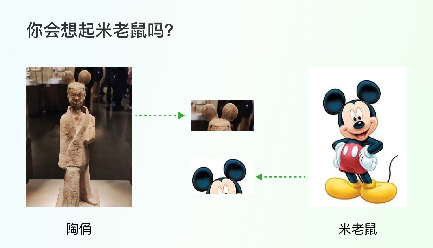 這就是心智模型,你對(duì)頭頂?shù)拇髨A形的心智是“米老鼠”,所以一旦你看到類似的形狀,米老鼠的形象就會(huì)浮現(xiàn)出來,這個(gè)發(fā)髻的形狀和你心里對(duì)米老鼠的形象產(chǎn)生了匹配。