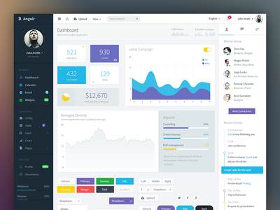 藍藍設(shè)計是一家專注而深入的設(shè)計公司,致力于提供有效、經(jīng)典卓越的設(shè)計,在工作中,目前有很多客戶選擇購買了Bootstrap ui的框架,客戶們選擇Bootstrap的原因是因為它的框架中許多組件已經(jīng)寫好,js等很方便直接引用,程序員們只需直接用就可以,可以把工作的重心放在后臺程序的開發(fā)上。但是Bootstrap ui只是提供了各種元素,無法直接使用,需要進行二次設(shè)計和開發(fā)。藍藍設(shè)計做了許多這樣的工作,包括整合客戶的業(yè)務(wù)和需求重新設(shè)計頁面的風(fēng)格和布局,最后切圖修改Bootstrap ui的css,這里是我們工作前收集的國外各種風(fēng)格扁平化后臺管理界面,做成系列欣賞,與大家分享~~~~