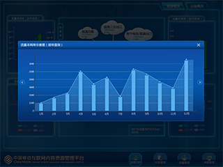 4、IDC服務(wù)流量——呈現(xiàn)的是全網(wǎng)各省IDC服務(wù)流量的熱力圖。在地圖上點(diǎn)擊某個省份,呈現(xiàn)該省當(dāng)月的IDC服務(wù)流量。